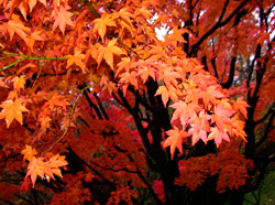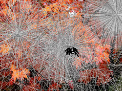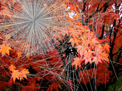 Ausgansbild ist ein herbstlicher Wald, durch Mausklick fangen Spinnenweben an,